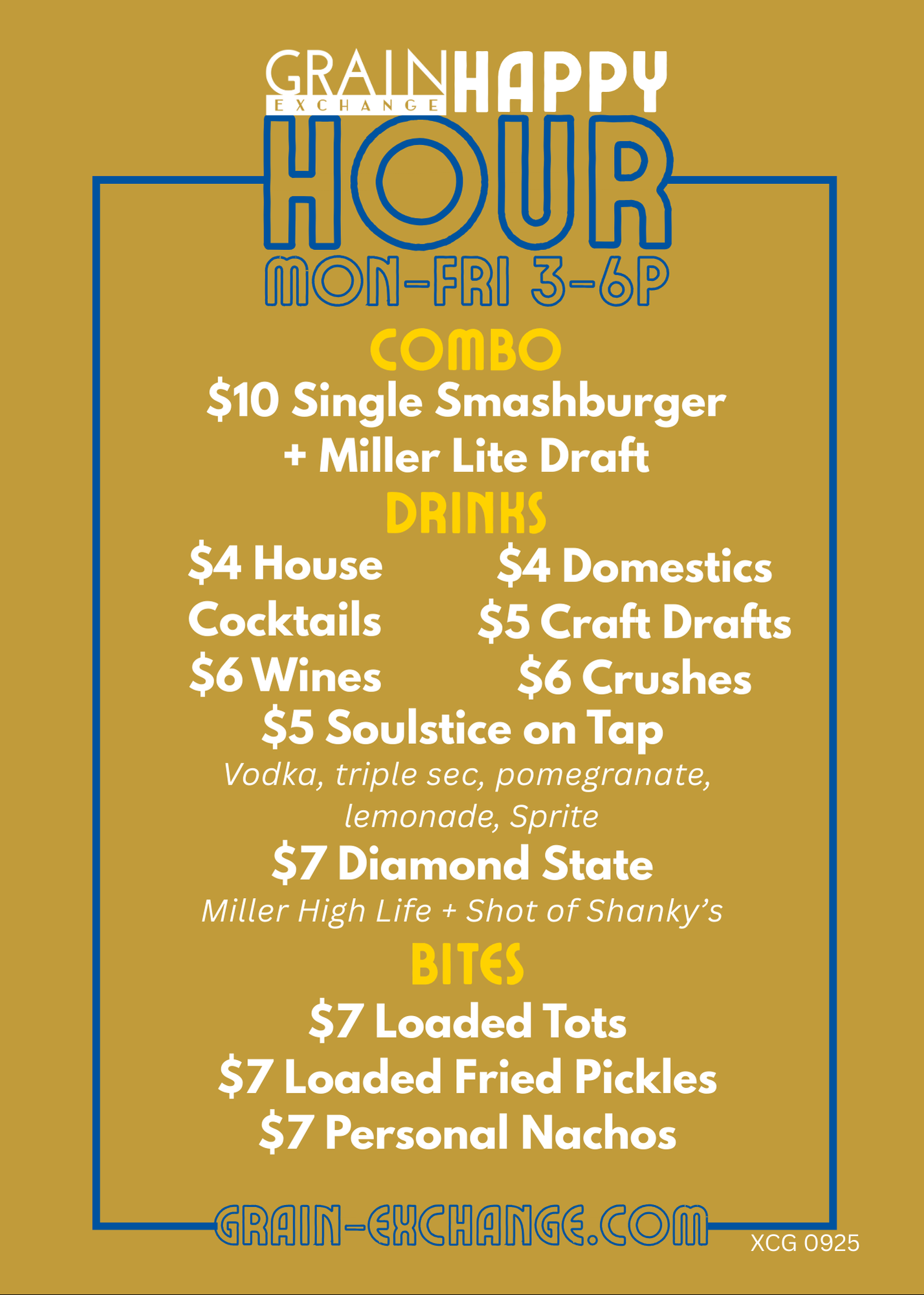 Walk-ups are welcome. Feel free to email us at least 24 hours prior at Exchange@Grainonmain.com for your reservation or private event request. We will confirm via email.